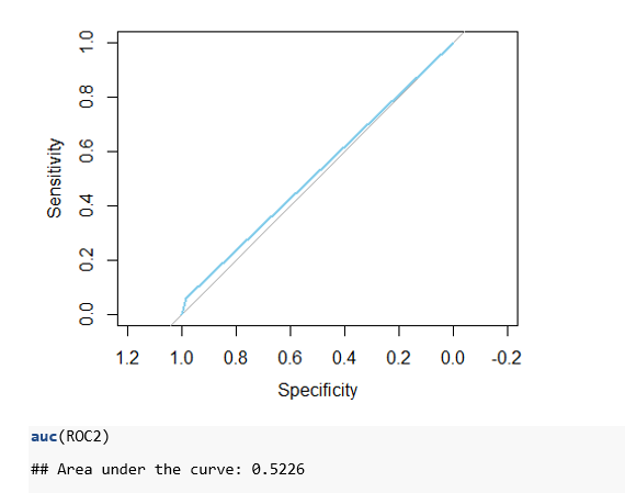 And here’s the ROC (Receiver operating characterstic) curve. Oof.